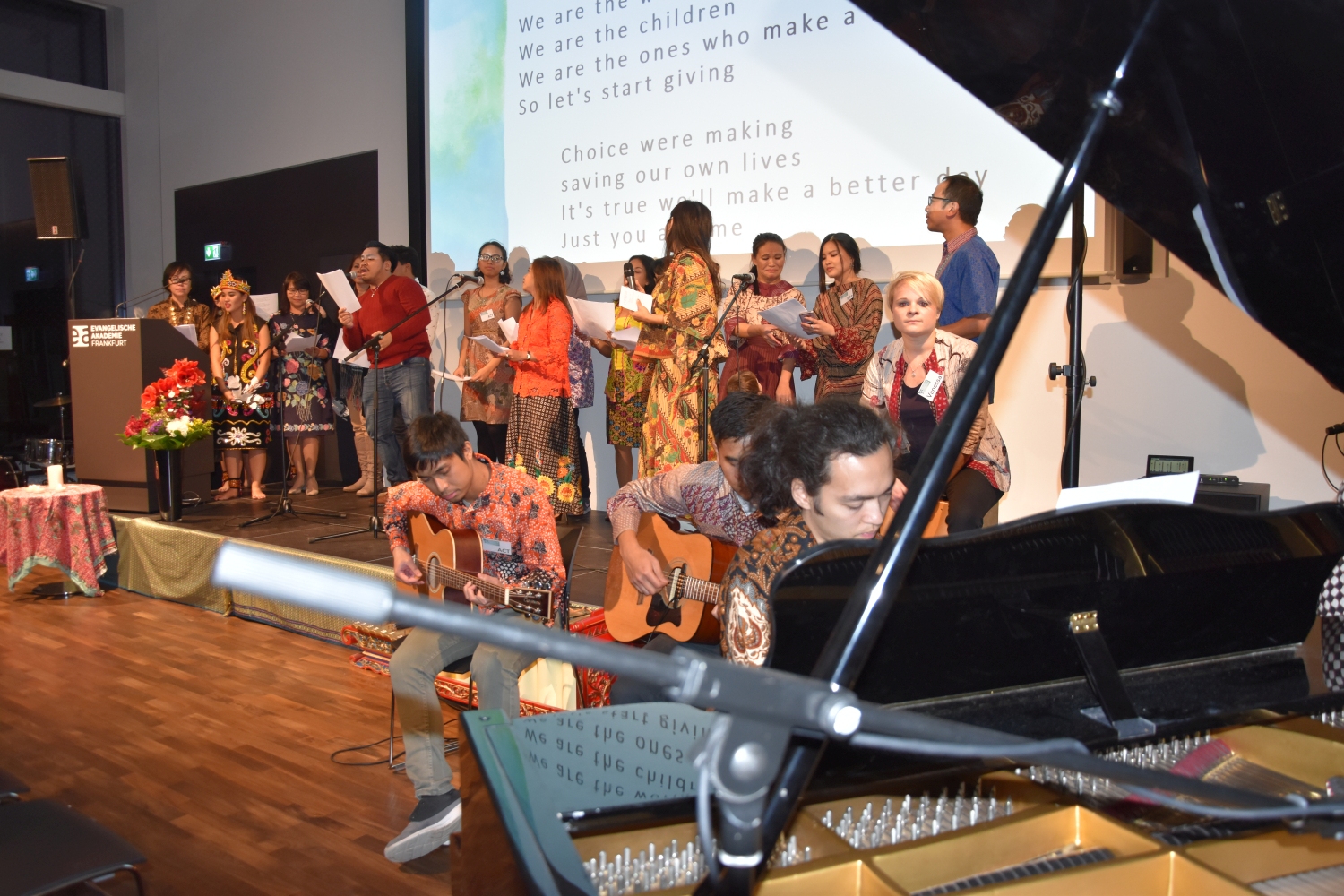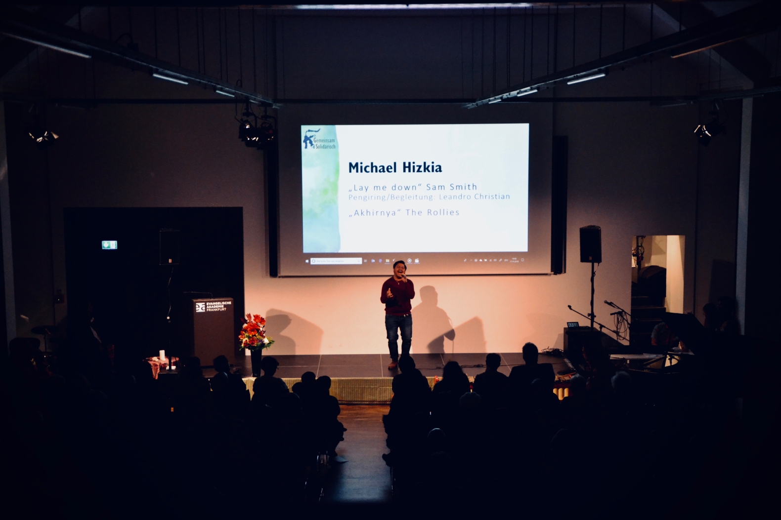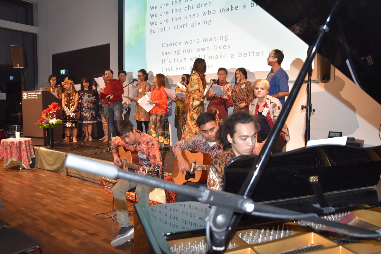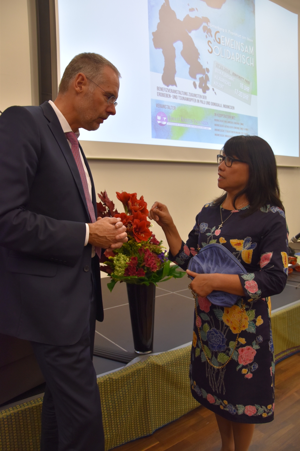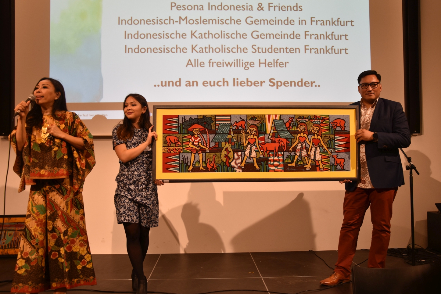 Program utama dalam acara malam amal ini, telah menampilkan diatas panggung yaitu musik Indonesia, suara dan tarian tradisional, musik klasik, dan musik pop. Ketua Jemaat kami Jens Balondo dalam sambutannya menekankan betapa pentingnya satu kerjasama antaragama pada dikalangan generasi muda. Selain bantuan kemanusiaan, proyek ini juga memberi sinyal pentingnya dialog dengan berbasiskan toleransi. „Salah satu daerah yang hancur tertimpa bencana adalah Pusat Pelatihan dan Pembinaan Warga Gereja dan Warga Masyarakat milik Gereja Protestan Indonesia Donggala. Lembaga ini juga adalah tempat diselenggarakannya Dialog Antaragama. Karena itu bagi kami Sentrum ini sangat penting. Sentrum ini harus kita kembali bangun bersama-sama, agar supaya generasi yang akan datang memiliki masa depan dan harapan untuk menunjukan kebersamaan dan kesatuan dalam kepelbagaian masyarakat kita." Demikian Pendeta Junita Rondonuwu-Lasut, Pendeta Jemaat Kristus Indonesia Rhein-Main menambahkan.