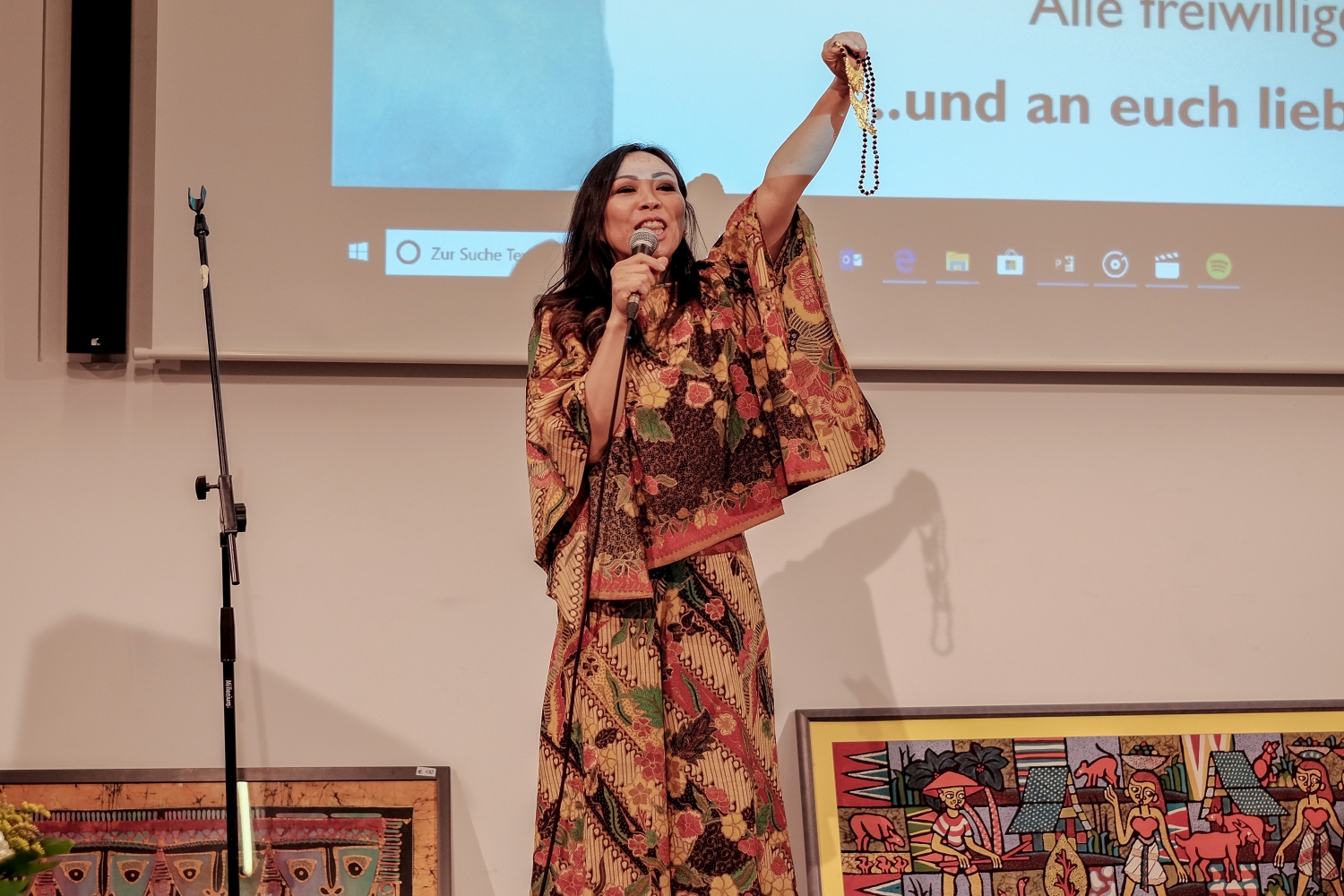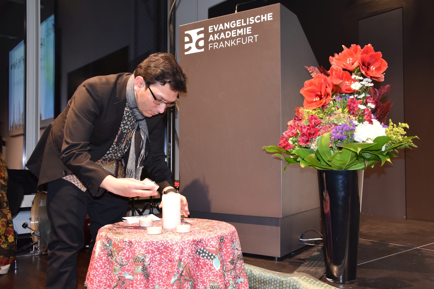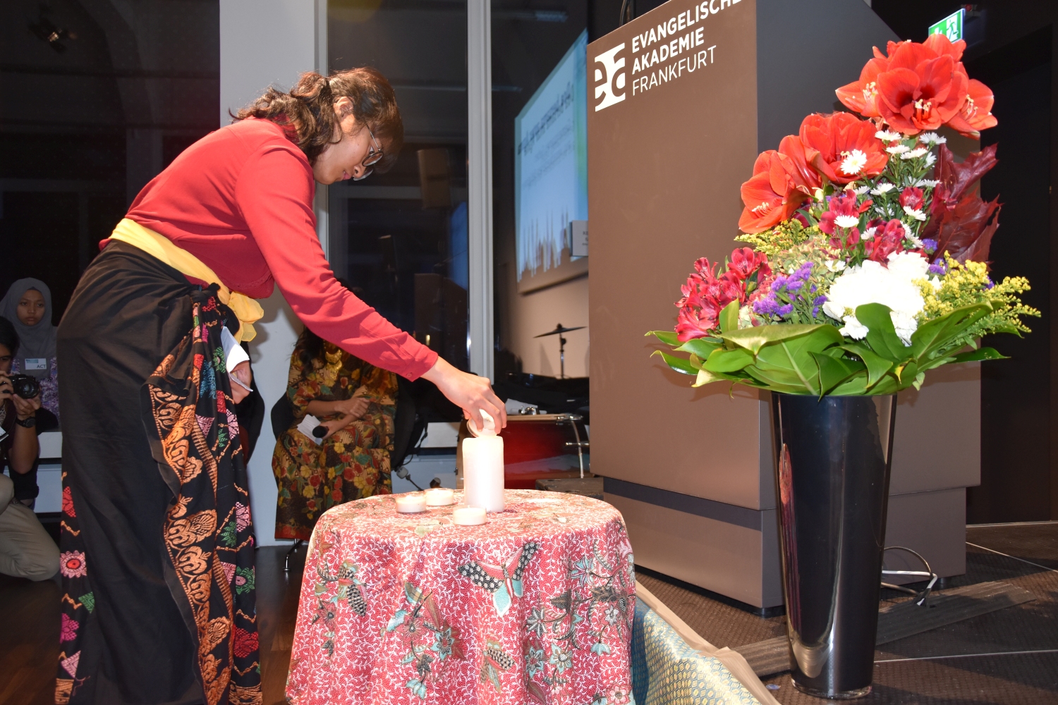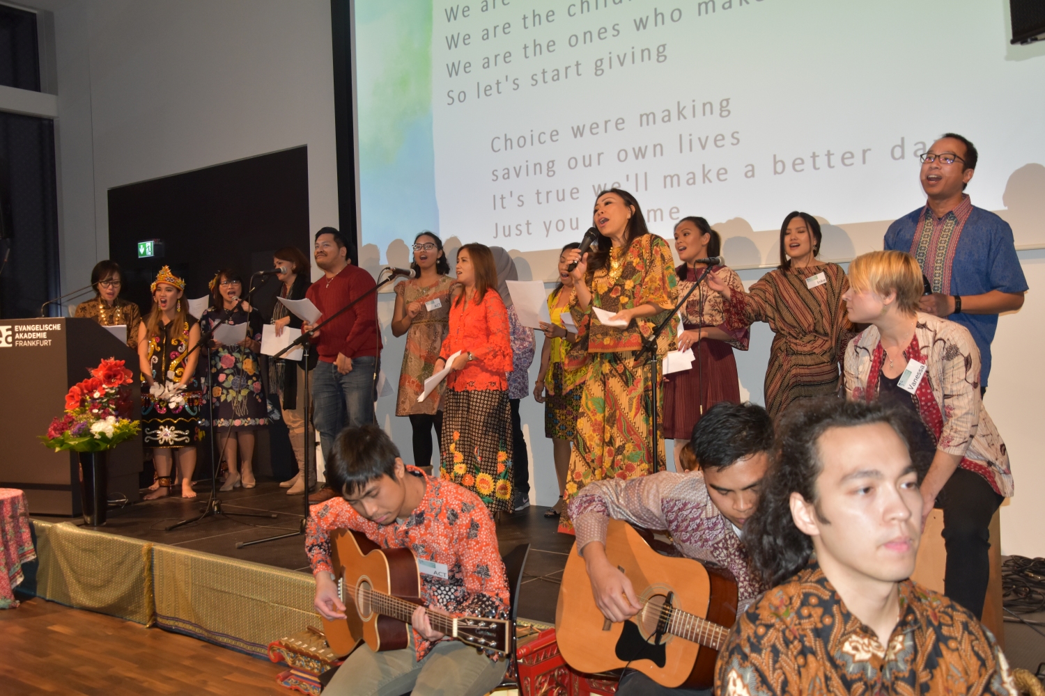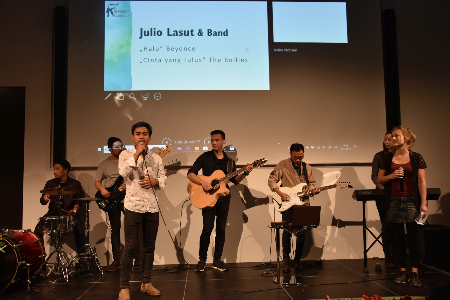 Program utama dalam acara malam amal ini, telah menampilkan diatas panggung yaitu musik Indonesia, suara dan tarian tradisional, musik klasik, dan musik pop. Ketua Jemaat kami Jens Balondo dalam sambutannya menekankan betapa pentingnya satu kerjasama antaragama pada dikalangan generasi muda. Selain bantuan kemanusiaan, proyek ini juga memberi sinyal pentingnya dialog dengan berbasiskan toleransi. „Salah satu daerah yang hancur tertimpa bencana adalah Pusat Pelatihan dan Pembinaan Warga Gereja dan Warga Masyarakat milik Gereja Protestan Indonesia Donggala. Lembaga ini juga adalah tempat diselenggarakannya Dialog Antaragama. Karena itu bagi kami Sentrum ini sangat penting. Sentrum ini harus kita kembali bangun bersama-sama, agar supaya generasi yang akan datang memiliki masa depan dan harapan untuk menunjukan kebersamaan dan kesatuan dalam kepelbagaian masyarakat kita." Demikian Pendeta Junita Rondonuwu-Lasut, Pendeta Jemaat Kristus Indonesia Rhein-Main menambahkan.